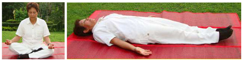 ๑. หากนั่งให้หงายฝ่ามือทั้งสองข้างวางบนหัวเข่า หากนอนให้วางแขนหงายมือไว้ข้างตัว หรือคว่ำฝ่ามือไว้ที่หน้าท้อง