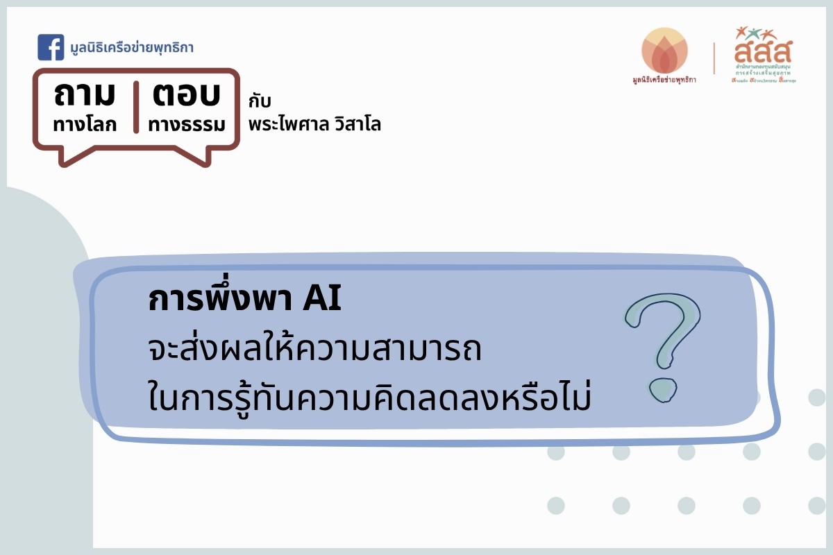 2. พระอาจารย์มองว่าการพึ่งพา AI ในการคิดหาคำตอบหรือการตัดสินใจในเรื่องต่างๆ จะส่งผลให้ความสามารถในการรู้ทันความคิดของเราลดลงหรือไม่คะ และเราจะฝึกฝนให้รู้เท่าทัน ทั้งความคิดของตนเองและข้อมูลที่ AI สร้างขึ้นมาได้อย่างไร