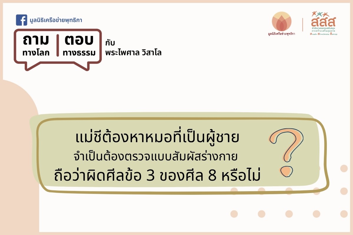 3. กราบนมัสการพระอาจารย์เจ้าค่ะ แม่ชีต้องหาหมอที่รักษาเป็นหมอผู้ชาย ไม่สามารถพบหมอผู้หญิงได้และจำเป็นต้องตรวจแบบสัมผัสร่างกาย ถือว่าผิดศีลข้อ 3 ของศีล 8 หรือไม่และต้องปฏิบัติตนอย่างไร