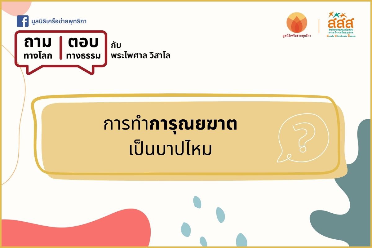 1. ถ้าเราไม่สบาย เป็นโรคที่รู้ว่ายังไงก็รักษาไม่หาย แล้วทำหนังสือบอกเจตนาของเรากับครอบครัวว่า ถ้าเราเริ่มดูแลตัวเองไม่ได้แล้ว ขอให้เค้าพาไปต่างประเทศเพื่อทำการุณยฆาต แบบนี้เป็นบาปไหมคะ? เจตนาคือไม่ต้องการเป็นภาระทั้งทางกายและทางใจให้คนในครอบครัว และคนรอบข้าง เพราะทุกคนก็มีภาระของตัวเองอยู่แล้ว การรักษาก็ต้องใช้เงินเยอะ ยังไงก็ต้องตายอยู่ดี ขอให้ตายไปเลยดีกว่า อยู่เป็นภาระของคนอื่นเป็นปีๆ ทำให้เขาหมดทั้งเงิน หมดทั้งกำลังใจ เพราะต้องทุกข์ทรมานใจกับภาระที่หนักมาก