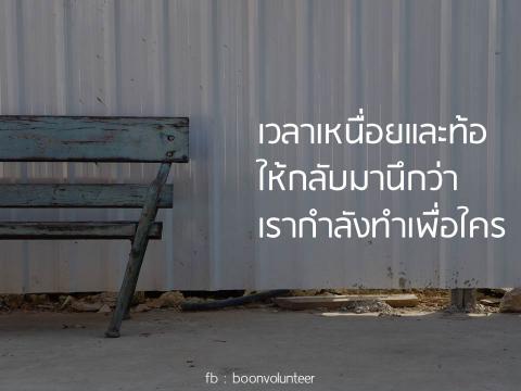 สักพักก็คิดได้ว่า ทุกคนที่มาต่างมีจุดประสงค์เดียวกัน คือ ทำจิตอาสาเพื่อผู้อื่นโดยไม่หวังสิ่งตอบแทน ซึ่งหากเราใช้ใจเป็นตัวนำ เราก็น่าจะทำได้ ในที่สุดเราก็ทำผลงานได้สำเร็จอย่างที่ตั้งใจไว้