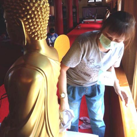 ส่วนจิตอาสาในภาพ เขากำลังทำความดี ด้วยการเช็ดทำความสะอาดด้านหลังองค์พระพุทธรูป