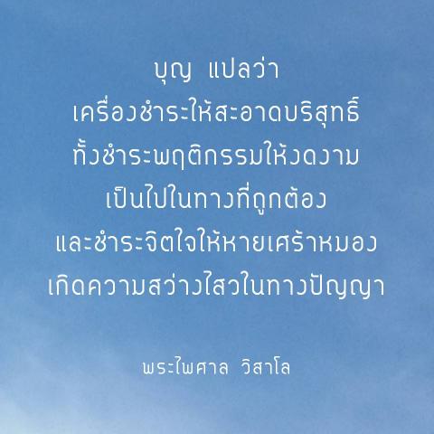 บุญ แปลว่าเครื่องชำระให้สะอาดบริสุทธิ์
