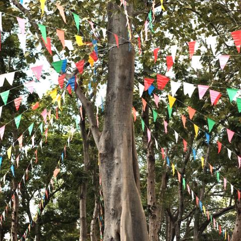 ธงราวในภาพนี้ เรานำมาประยุกต์ใช้เพื่อตกแต่งสถานที่ สำหรับการทำกิจกรรมจิตอาสา