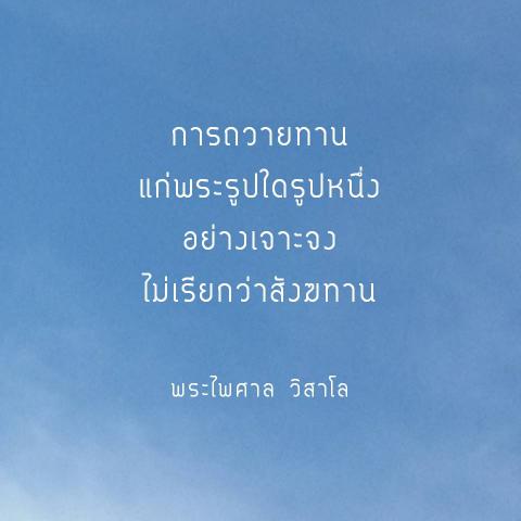 สังฆทานนั้นหมายถึงการการถวายทานแก่สงฆ์หรือพระทั้งคณะโดยไม่เจาะจงที่พระรูปใดรูปหนึ่ง เพราะคำว่า “สงฆ์”นั้นหมายถึงหมู่คณะ มิได้แปลว่า “พระภิกษุ” อย่างที่มักเข้าใจกัน การถวายแก่สงฆ์หรือพระทั้งคณะ เป็นบุญกิริยาที่พระพุทธองค์ตรัสว่ามีอานิสงส์มาก และมากยิ่งกว่าการถวายแก่บุคคลอย่างเจาะจง แม้ท่านนั้นจะเป็นถึงอริยบุคคลก็ตาม ดังมีพุทธพจน์ว่า “เราไม่เห็นว่าของที่ให้แก่บุคคล (ปาฏิบุคลิกทาน) มีผลมากกว่าของที่ให้แก่สงฆ์ โดยปริยายใด ๆ เลย”