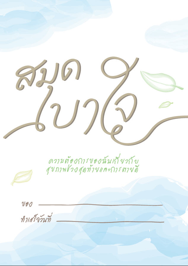 เพียงทำเครื่องหมายถูกหน้าข้อความ หรือเติมคำในช่องว่าง จากนั้น ลงลายเซ็นกำกับในตอนท้ายของสมุด ก็จะได้เอกสารต้นฉบับ สำหรับสื่อสารเจตนาของท่าน เพื่อให้ท่านเบาใจไปเปราะหนึ่ง