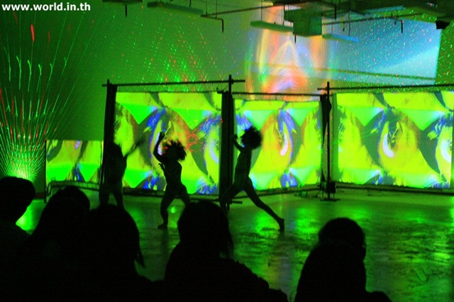 ห้องจัดการแสดงชั้น ๔ ของอาคารหอศิลป์ที่ออกแบบให้เป็น "คอมเพล็กซ์" อันแสนอึดอัดนี้ ถูกแบ่งออกเป็นสามส่วนเมื่อมองจากที่นั่งคนดูคือ ส่วนด้านหน้าเป็นพื้นที่ของบูโต ส่วนด้านซ้ายเป็นพื้นที่ของแนวจอภาพและส่วนแสดงแสง และส่วนด้านขวาจะฉายภาพการแสดงสดอีกทีบนผนัง