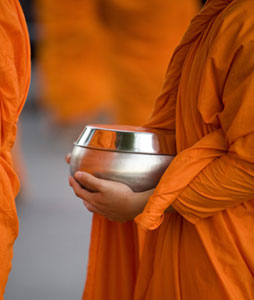 “อ้าวคุณโยมตักข้าวใส่บาตรนะ ....ใส่กับข้าวด้วย ........เอาดอกไม้ธูปเทียนวางบนฝาบาตร......เสร็จแล้วองค์ที่หนึ่ง ......พระไปยืนรอทางซ้ายแล้ว”