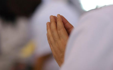 อิมินา...อิติปิโส สวดเกินอายุหนึ่งจบ ยายอายุ ๘๐ ปี พวกเราพากันสวด ๘๑ จบ น้องพยาบาลเป็นคนจดว่าได้กี่จบแล้ว ขณะสวดมนต์ ฉันเผลอคิดในใจ ทุกคนจะไหวไหมนี่ ตั้ง ๘๑ จบ สวดได้ประมาณ ๔๐ กว่าจบฉันรู้สึกไม่สงบในใจ นึกถึงคำสอนครูดลว่าให้กลับมาอยู่ที่ฐานกาย เรากำลังนั่งรับรู้ว่าก้นสัมผัสกับเก้าอี้ ด้านหลังมั่นคง ฉันยืดหลังขึ้น ด้านหน้าเมตตานึกถึงความตั้งใจที่จะช่วยผู้ป่วย ด้านบนศีรษะให้มีสติกลับมาอยู่กับบทสวดมนต์ ...ทำให้ฉันพาทุกคนสวดมนต์ได้ครบ ๘๑ จบ สังเกตเห็นผู้ป่วยหยุดหายใจ ช่างปาฏิหาริย์อีกราย ...ผู้ป่วยกลับมาหายใจเฮือกอีกครั้ง ประมาณ ๒ ครั้ง/นาที ลูกสาวผู้ป่วยรีบหยิบแบงค์ยี่สิบบาทใส่มือยาย ให้ยายนำไปใช้ในภพหน้า