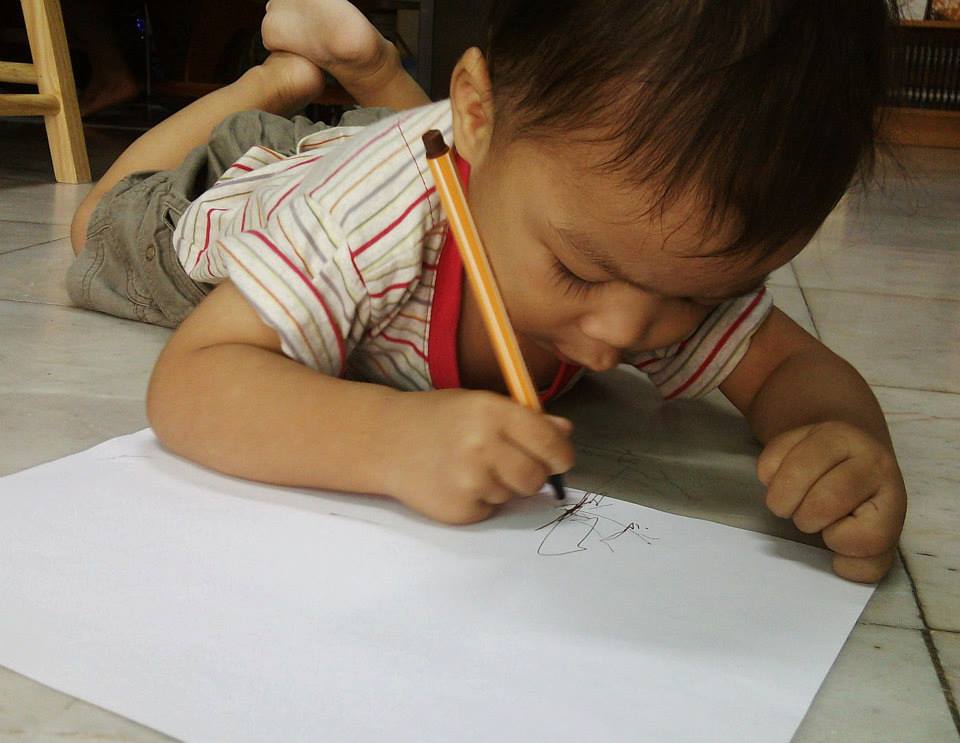 มือข้างหนึ่งของเด็กน้อยหยิบปากกาเมจิกสีเหลือง อีกมือหนึ่งหยิบทีละด้ามที่กองอยู่ตรงหน้า ส่งมาให้เราถือไว้ ถ้าพูดได้คงบอกว่าช่วยถือไว้ก่อน แต่หนูน้อยธาราเพิ่งจะผ่าน ๑ ปีกับ ๒ เดือนมาไม่นานเอง เมื่อสองวันก่อนยังแค่เปิดซองใส่ปากกาเมจิกไปมา หยิบปลอกออกใส่ปลอกเข้า วันต่อมาก็ขีดเส้นนิดๆ หน่อยๆ วันนี้หนูน้อยจะทำอะไรต่อนะ คำที่กำลังฝึกพูดอยู่ช่วงนี้เป็นคำที่คุ้นชิน บุคลิกเด่นของธาราคือการจดจ่อในสิ่งที่ตนเองสนใจ ถ้าจะลองอะไรก็ลองให้ถึงที่สุด ตัวอย่างของเล่นที่เป็นลูกไข่ หมุนแกะออกมาได้ ก็จะหมุนกลับเข้าไปจนได้