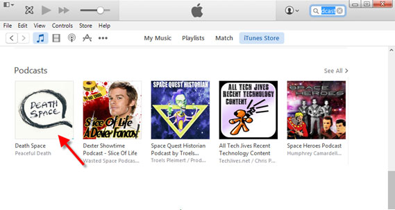3. พิมพ์คำว่า Death Space podcast ที่ช่องค้นหา