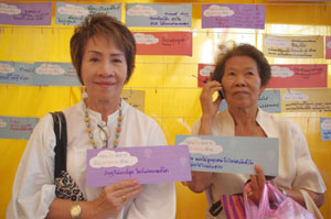 คุณป้าวัย ๗๐ ปีคนหนึ่งบอก หลังจากผู้เขียนขออนุญาตถ่ายรูปข้อความที่คุณป้าเขียนถึงความปรารถนาก่อนตายของตัวเอง และจะอัพโหลดรูปไปไว้ในเฟซบุ๊กแฟนเพจ peacefuldeath หลังจากจบงาน (ดูรูปประกอบ)
