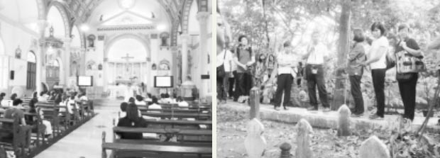 ตอนบ่าย เราใช้เวลาอย่างเต็มอิ่ม ฟังคติความเชื่อเกี่ยวกับความตายของศาสนาคริสต์ ที่วัดซางตาครู้ส ซึ่งตั้งอยู่ไม่ไกลนักจากมัสยิดต้นสน บรรยายอย่างเบิกบานโดยบาทหลวงเจ้าอาวาส