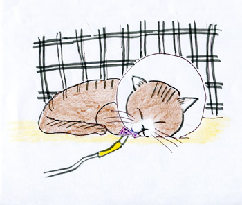 การตัดสินใจให้ “ส้มจีน” อยู่โรงพยาบาลครั้งนี้เป็นเพราะปัสสาวะไม่ออก เนื่องจากมีเม็ดทราย และลิ่มเลือดที่เกิดจากกระเพาะปัสสาวะอักเสบมาอุดตัน ซึ่งเป็นสาเหตุของโรคนิ่ว หมอที่รักษาแนะนำว่า ถ้าให้ดีจะต้องสวนท่อ อยู่โรงพยาบาลเพื่อให้น้ำเกลือ และกินยาตามเวลา ประมาณ ๔-๕ วัน ตอนแรกผู้เขียนลังเล แต่หมอบอกว่าการให้เขากลับไปบ้านเป็นการทรมานเขามากกว่าเดิม และยังต้องเทียวไปเทียวมาโรงพยาบาลทุกวัน การเทียวไปเทียวมาโรงพยาบาลไม่ใช่ภาระที่ผู้เขียนรู้สึกว่าลำบาก แต่การที่หมอบอกว่าการพากลับบ้านเป็นการทรมานเขานี่สิ ทำให้คิดหนัก สุดท้ายหลังจากต่อรองกับหมอ และเจรจากับส้มจีนซึ่งนั่งหน้าบึ้ง (คนเลี้ยงแมวเท่านั้นที่รู้ว่า แมวทำหน้าบึ้งยามถูกขัดใจอย่างไร) เลยต้องยอมให้อยู่โรงพยาบาลตามแนะนำของหมอ