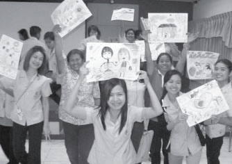 ต่อมาคือ การทำความเข้าใจในสิ่งที่จะทำร่วมกันว่า งานที่ตั้งใจจะทำคืออะไร เป้าหมายอยู่ตรงไหน บทบาทของพยาบาลเป็นอย่างไร บทบาทของจิตอาสาสำคัญอย่างไร เมื่อรับรู้ร่วมกันแล้วจึงมาระดมความคิดกันว่าแต่ละฝ่ายจะทำอะไรได้บ้างในศักยภาพที่มี หลังจากนั้นจึงค่อยมาพูดคุยเรื่องทักษะ ซึ่งผู้จัดกระบวนการเรียนรู้ให้จะต้องสำรวจก่อนว่า สมาชิกในทีมมีความรู้และทักษะอะไรอยู่แล้วบ้าง และอะไรคือสิ่งที่อยากจะพัฒนาหรือเพิ่มเติม พร้อมกับเสริมแรงเพื่อทำให้ทีมรู้สึกมั่นใจในศักยภาพของตัวเองไปด้วย