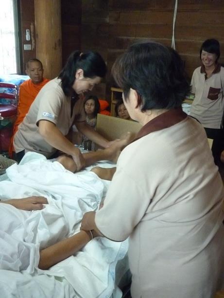 ยิ่งผู้ป่วยรักษาตัวในชุมชน โอกาสที่พยาบาลจะเข้ามาให้การดูแลก็ยากขึ้นไปอีก แต่จิตอาสาที่อยู่ในชุมชนเดียวกันย่อมเข้ามาให้การดูแลทางกายในเรื่องพื้นฐานได้มาก